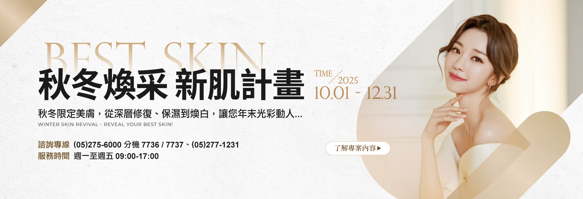 秋冬煥采、新肌計畫!秋冬限定美膚療程,讓您於年末時綻放自信光彩,活動時間:114年10月1日~114年12月31日...