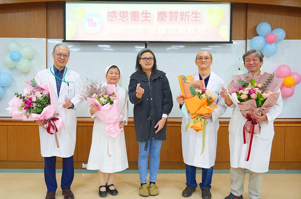 十二年前,一名產婦林女士在聖馬爾定醫院生產時突發「羊水栓塞」,一度命懸一線;今年十月,林女士再度回到聖馬爾定醫院迎接第二個孩子,沒想到生產過程中竟又發生同樣情況。感人的是,當年守護她的醫療團隊仍堅守在第一線,經通力合作搶救下再次展現奇蹟,院方特別舉辦「感恩重生 慶賀新生」活動,慶祝她與寶寶都平安健康。