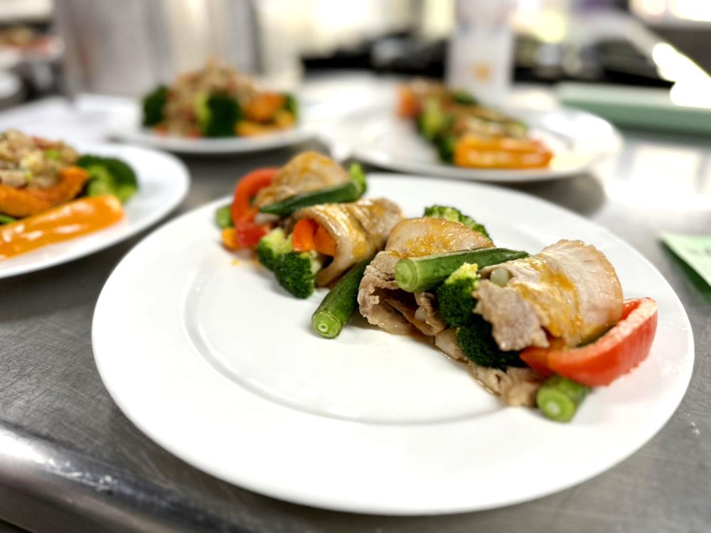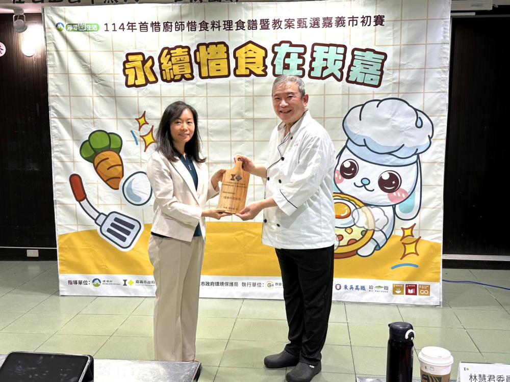 此次活動集結市民、餐飲從業人員及學校師生熱情參與,藉由競賽推廣「食當季、吃在地、零廚餘」等惜食理念,傳達從產地到餐桌的減碳概念與永續發展精神。競賽分為「料理食譜組」及「創意教案組」,前者需以指定主食材「帶皮豬五花」結合嘉義在地友善農產,於現場創作烹調並說菜展示;後者則以惜食教育為核心,設計具啟發性與實作性的課程,並進行教學展演。決賽現場,鍾寬宏主廚在90分鐘內發揮巧思,展現精湛廚藝,完成「香煎五花肉捲佐時蔬」、「五花肉燉南瓜」兩道料理,兼具全食物利用、美味與創新,獲得評審一致肯定。