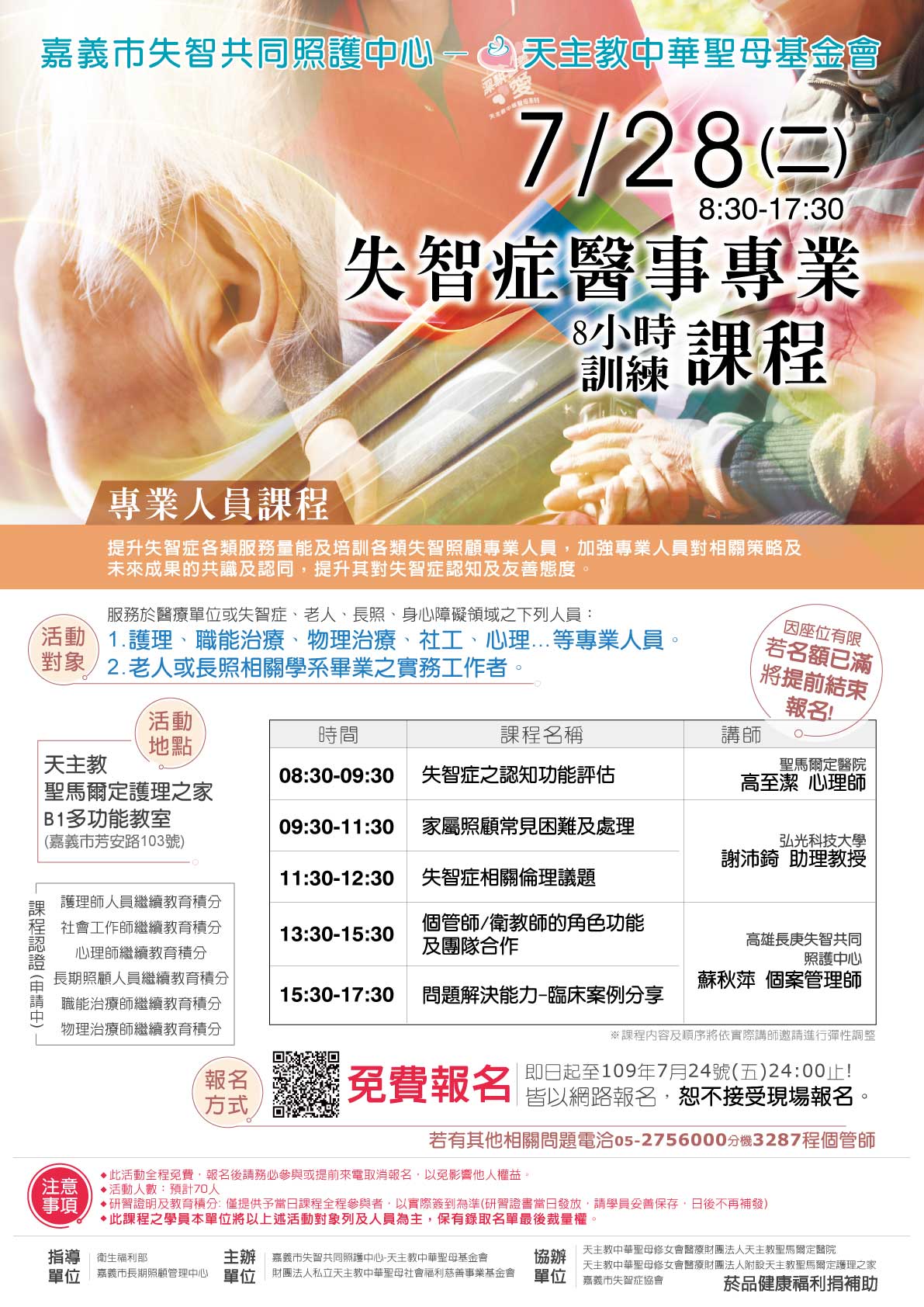 嘉義市失智共同照護中心-天主教中華聖母基金會【失智症醫事專業 8 小時訓練課程(個案管理師/衛教師)】開始報名囉!