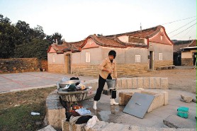 原本要找風獅爺,卻被中蘭聚落的古井所吸引。廣場上一名婦人在冷颼颼的天氣裡提井水洗衣,見我們到來親切地寒喧:「來金門玩嗎?」面對鏡頭毫不膽怯。