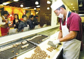 至於大陸客最愛買的貢糖,目前規模較大的品牌之一是聖祖貢糖,旗艦店高高聳起,乍看還以為是國外的免稅店!