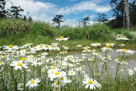 白花黃蕊的法國菊,為外來種植物,原產歐洲,為多年生草本植物,因主要生長於台灣高山,又稱高山菊。日據期間,法國菊從歐洲被帶到台灣山區繁殖,由於山區環境正如溫帶歐洲,法國菊適應了台灣土地,從此以高山為家,並在春夏季節開起花來。