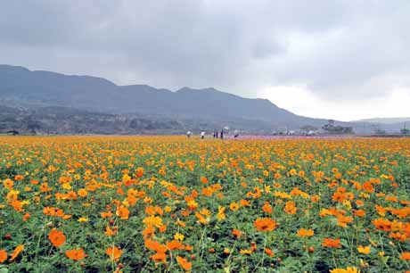 今年花海季,為了讓花期更長,分兩期播種,第一期所種的波斯菊、黃金菊、日月草、油菜花已全面盛開,因花期只有50天上下,第二期已在上月底播種,將接棒開花,所以這一次花海季的花期可延長到4月初,跨過春節到春假。