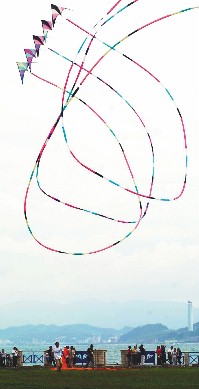 另有長達數十公尺的龍形風箏,名為「百子成龍」,以工筆在龍身畫滿100個小孩在玩各種童玩;另一款是以真的羽毛作成一隻丹頂鶴風箏;也有來自印尼,用樹葉編織的風箏,及紐西蘭用蘆葦桿架構而成的風箏。