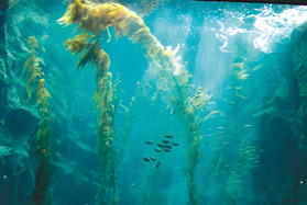 另外還有一座亞洲之最的「海藻森林」,這由美國加州移植過來的巨藻,是世界上生長率最快的植物之一,當環境條件合適的時候,它每天可以長大約六十公分,巨藻總長可以超過卅公尺。