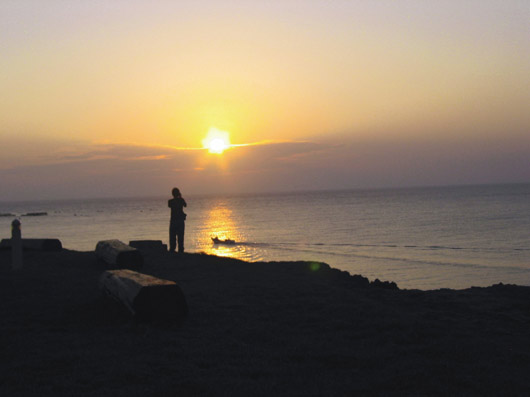 小琉球島上烈日還是那麼熱情,陽光下,小琉球海邊的白色房子遠看竟有點像希臘。雖然建築沒有南歐那麼優雅,但已把愛琴海的白與藍送到眼前,還有遊客中心的歐式拱型廊柱、新蓋的南洋風民宿,這南台灣的可愛離島越來越浪漫了。