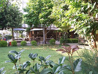 進入南園,除了廣袤的庭園之外,第一個印入眼簾的是餐廳所在地「同心樓」,全木造的外形讓人聯想起「龍門客棧」。從同心樓穿過草坪,彷彿一下又從武俠小說來到曹雪芹的紅樓夢裡。