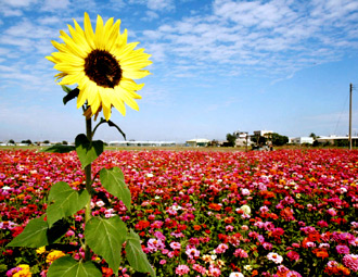 藍藍的天空和繽紛的花海,好美!2009嘉義市花海節將於本月19日展開,花海節會場玉山路底的花田最近百花盛開,讓許多民眾非常期待。